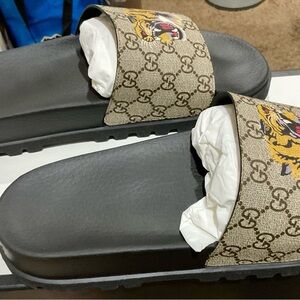 Gucci GG Supreme Monogram Tiger Mens Lug Sole Slide Sandals 12 Ebony