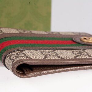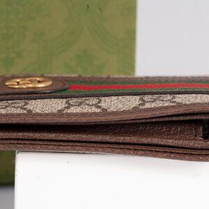 Gucci GG Supreme Monogram Web Men's Ophidia Bi-Fold Wallet Beige in Excellent Pre-owned Condition