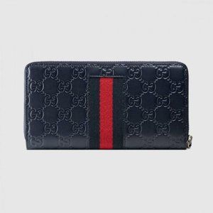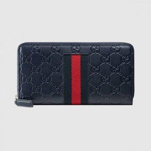 Gucci GG Supreme Monogram Web Zip Around Wallet in Navy