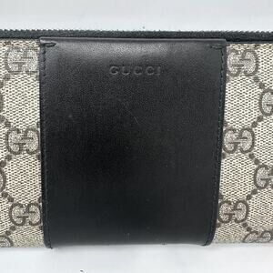 Gucci GG Supreme Monogram Zip Wallet Black Leather Trim