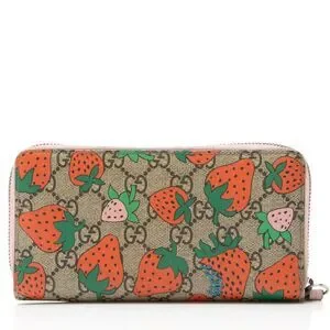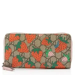 Gucci GG Supreme Strawberry Zip Around Wallet