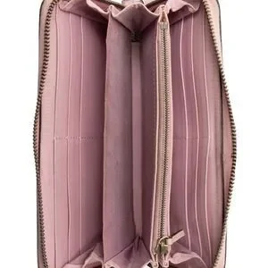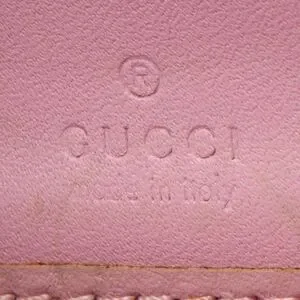 Delivery Duty Paid included – The Italian fashion house of Gucci continues to reinterpret its rich heritage under current Creative Director Alessandro Michele (2015). Maintaining a balance between historical reference and contemporary eclectic flare, the brand’s signature “double g” remains iconic. Gucci has been recognized as a worldwide leader in the luxury goods market for 90 years.Condition Notes: Visible scuffs and wear throughout exterior edges and corners. Scuffs and marks throughout exterior. Marks and light darkening throughout zipper tape. Darkening, marks, and light pilling throughout zipper tape. Surface scratches to hardware. Heavy marks, darkening, and wear throughout interior.Width: 7.25"Height: 4"Depth: 1"Type of Material: Coated Canvas, LeatherColor: Beige, PinkLining: Pink LeatherPockets: One Interior Zipper, Twelve Credit Card SlotsHardware: Antique Gold ToneClosure: ZipperOrigin: Italy Measurments: width: 184 mm height: 101 mm strap length: 0 mm handle drop: 0 mm
