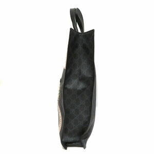 Gucci GG Supreme Tote Bag Shoulder Gray Black Leather Emblems