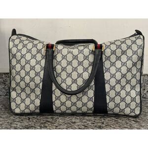 Gucci GG Supreme Vintage Boston Bag Web Stripe Accent Navy - VWG 335049