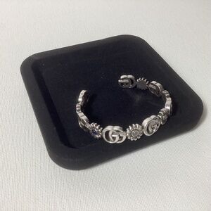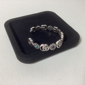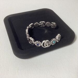 Gucci GG Vintage Silver Blue Stone Cuff Bangle Bracelet