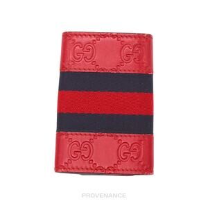 🔴 Gucci GG Web 6 Key Holder - Red Guccissima Leather