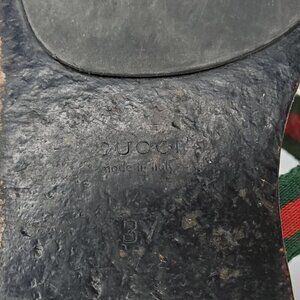 Designed with Gucci’s iconic green and red web stripe fabric upper, these sandals feature a slip-on thong silhouette, gold-tone interlocking G logo accent, and a black leather footbed embossed with the GG pattern. A flat heel ensures all-day comfort with effortless style.
