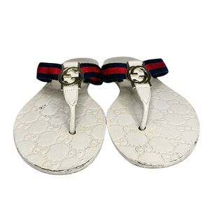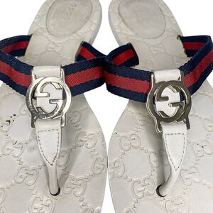 Gucci GG Web Stripe Thong Sandals EU 38.5 US 8.5 White Flip Flop Slide Flat Heel