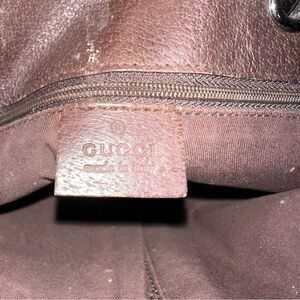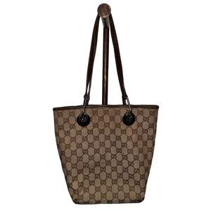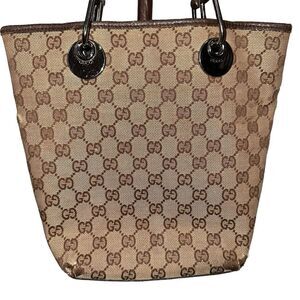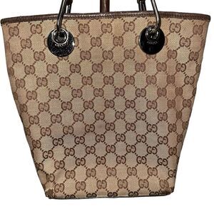 Authentic Gucci GG brown monogram tote bag. See photos for size measurements and condition. Wear on all 4 corners.