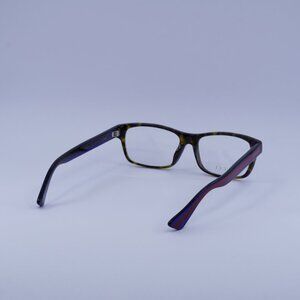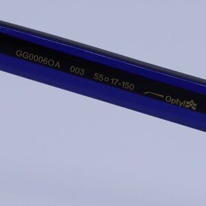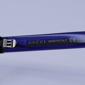 Authentic Gucci GG0006OA 003 eyeglasses in havana frame and transparent blue/red temples.