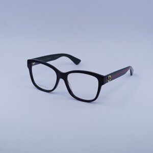 Authentic Gucci GG0038ON 011 eyeglasses in Black/Green frame.