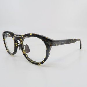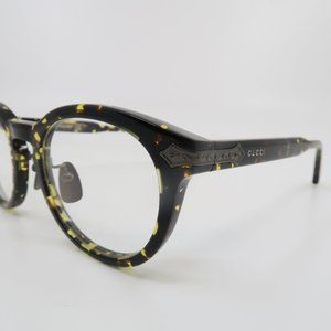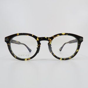 Gucci GG0071O 002 50mm Tortoise Gloss and Titanium New Men's Eyeglasses. This frame color is tortoise (brown and yellow) gloss acetate, full rim, with adjustable Titanium nose pads for comfort, round shape. The temple color is also tortoise shell gloss acetate with Gucci and Titanium design pattern engraved at each side. Width/Bridge/Temple size is 50mm 22mm 145mm. Frame is shipped on Gucci: case, microfiber cloth and the certificate of authenticity. Made in Japan. Case color may vary. Box Gucci tray.