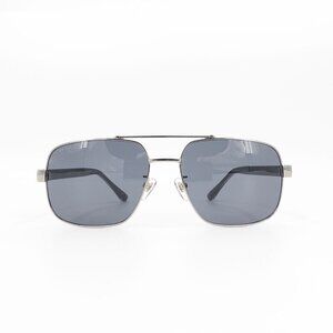 Gucci GG0529 Squared Aviator Sunglasses Silver Gray OS