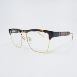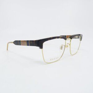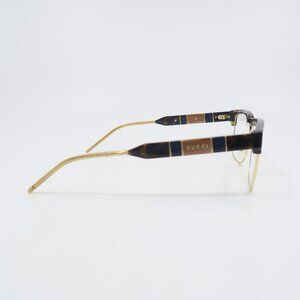 Gucci GG0605O 002 52mm Havana/Havana/Gold, New Unisex Square Eyeglasses Frames. This frame color is Havana (brown tortoise shell) gloss acetate with gold rims and bridge, adjustable gold and clear silicone nose pads for comfort, full rim, square style. Temples color are also brown tortoise shell gloss acetate with 2 solid navy blue stripes and gold Gucci letters at each side. Also, gold end tips with gold hinges. Width/Bridge/Temple size is 52m 16mm 145mm. Frame is shipped with the Gucci: case, microfiber cloth, dust pouch, tag and authenticity card. Made in Japan. Case color may vary. nh Box Gucci #Tray