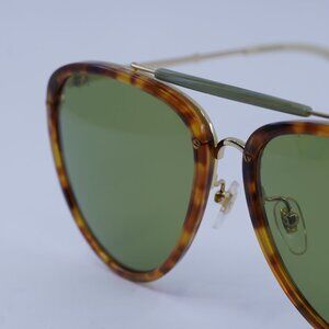 Gucci GG0672S 003 Sunglasses Havana/Gold Aviator Frame, Green Lenses