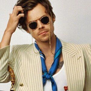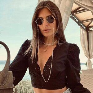 Gucci GG0991S 002 Sunglasses Gold Round Frame, Grey with Gold Chain Lenses