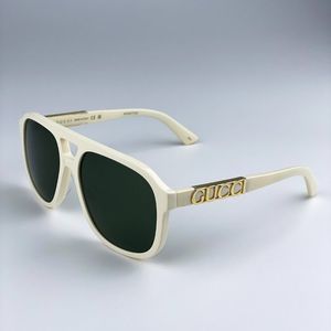 🔥 Gucci GG1188S 005 Sunglasses Ivory White Green Pilot Unisex Logo