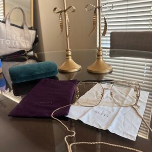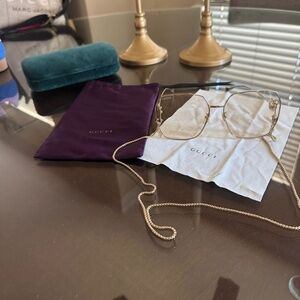 Gucci glasses that are extremely hard to find. Brand new never worn. Comes with gold chain, case, and cleaning cloth.