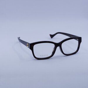 Authentic Gucci GG1259OA 002 eyeglasses in dark havana frame.