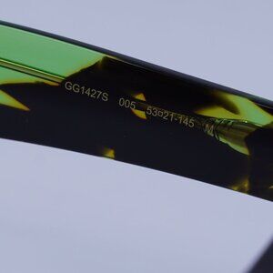 Authentic Gucci GG1427S 005 sunglasses in black frame with green havana temples.