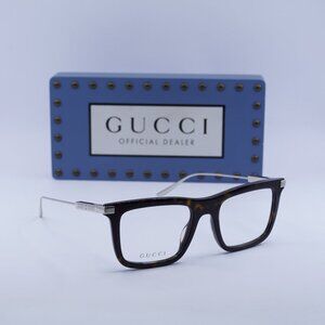 Gucci GG1438O 002 Square Eyeglasses 53mm Havana/Silver