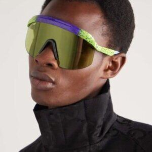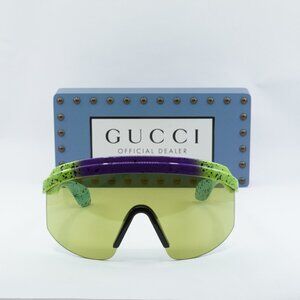 Gucci GG1477S 001 Shield Sunglasses - Violet Shaded Green/Light Green