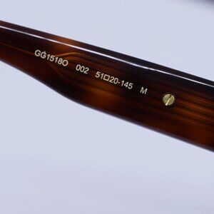 Authentic Gucci GG1518O 002 eyeglasses in shiny medium havana frame.