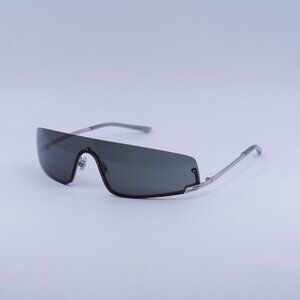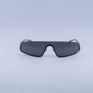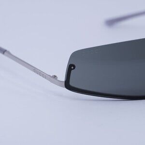 Gucci GG1561S 001 Sunglasses Shiny Silver Shield Frame, Grey Lenses