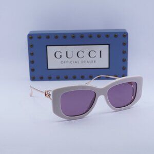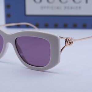 Gucci GG1566S 003 Rectangle Sunglasses - Ivory/Gold/Violet