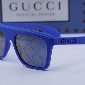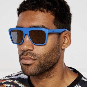Gucci GG1570S 004 Square Sunglasses - Blue/Bronze & Blue with GG Pattern