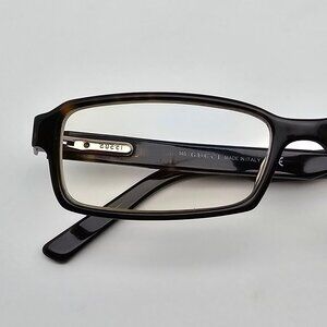 This listing is for authentic Gucci GG1574 086 Olive Amber Rectangular Eyeglasses Frame w/ Flexhinge and Case Italy 53-15-140. Current lens are unknown Rx prescription and will need to be replaced with lens of your choice (FRAME ONLY). Eyeglasses frame is in good pre-owned condition, with light wear (see photos). Size: 53-15-140. Made in Italy. Gucci Folding brown monogram hard case included in listing. Please see pictures to make your complete condition assessment.