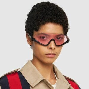 Gucci GG1650S 002 BRAND NEW Sunglasses Black Pink Unisex Shield Mask