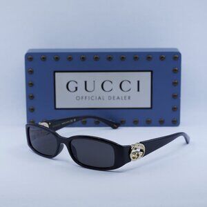 Gucci GG1661S 001 Rectangle Sunglasses - Shiny Black\Grey