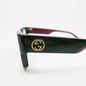 Gucci GG1666O 002 50mm Brown Tortoise/Green/Red New Women Rectangle Eyeglasses. This frame color is solid brown tortoise shell gloss acetate, full rim, lightweight, rectangular style. Temples color are olive green with burgundy gloss end tips. There are the Gucci logos on each temple side. Width/Bridge/Temple size is 50mm 19mm 140mm. Frame is shipped with all Gucci accessories: authenticity card, tag and case. Made in Italy. Box Gucci 2