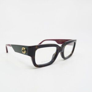 Gucci GG1666O 002 50mm Brown Tortoise/Green/Red New Women Rectangle Eyeglasses.