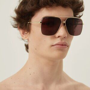 Gucci GG1676S 002 Men NAVIGATOR BRAND NEW Sunglasses Gold Brown Aviator