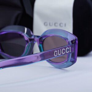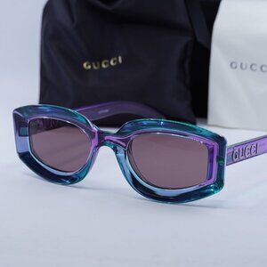 Gucci GG1719S 003 Geometric Sunglasses - Shiny Transparent Violet