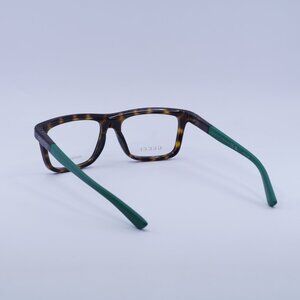 Authentic Gucci GG1737O 004 eyeglasses in dark havana/green frame.