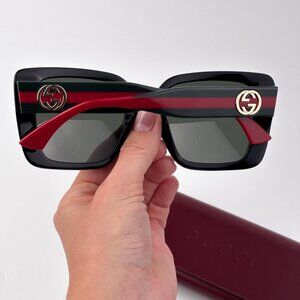 Gucci GG1861S Sunglasses – Black & Green Square Frame with Grey Lenses | Model 001