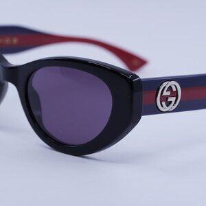 Gucci GG1862S 004 Sunglasses Black/Blue/Red Cat Eye Frame, Violet Lenses