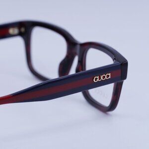Authentic Gucci GG1865O 003 eyeglasses in Dark Red Havana/Blue/Red frame.