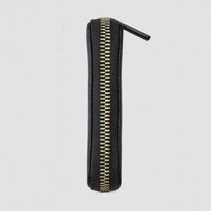 • Gold-tone 3/4 wrap-around zipper with matching leather pull tab