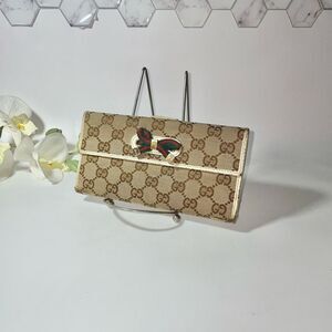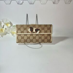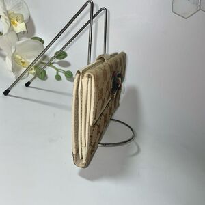 Gucci GG Logo Canvas Leather Trim Continental Wallet