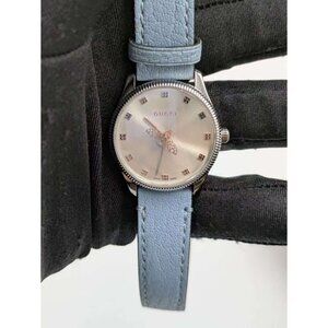 Gucci G-Timeless Silver Bee Quartz Lambskin Strap Watch Blue 29mm 717867