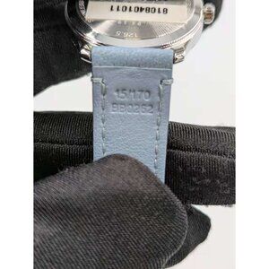 -The style in silver dial is paired with a light blue lambskin strap.