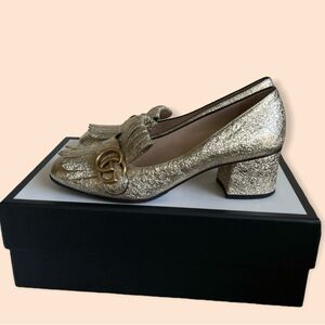 Gucci Galassia Marmont Metallic Gold Platino Loafers Pumps Heels