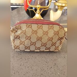 In great condition Gucci Gg Canvas Cosmetics Pouch Vanity Blown Red.