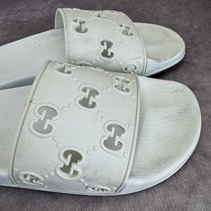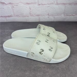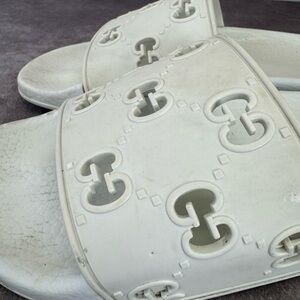 Authentic Gucci Gg Logo Cut Out White Slide Sandals Women 39