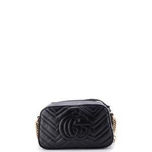 Introducing the Gucci GG Marmont Shoulder Bag in Small size, crafted from luxurious matelassé leather. The iconic GG logo is elegantly embellished on the front, showcasing the brand's signature style. This versatile bag features a sliding chain strap, allowing it to be worn as a shoulder or top handle bag, adding a touch of sophistication to any outfit.