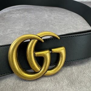 Gucci Gg Marmont Wide Black Leather Belt with Gold Buckle 105/42”